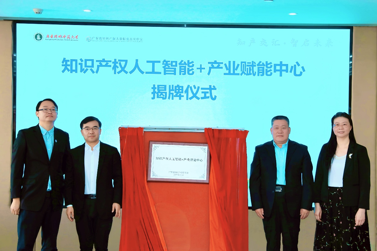 随后,活动聚焦产业赋能,正式成立“知识产权人工智能+产业赋能中心”。广东省知识产权研究会理事长谢红、秘书长张雅连,广东技术师范大学校长戴青云,以及广东技术师范大学达之产业学者、该中心主任季节教授共同完成揭牌。