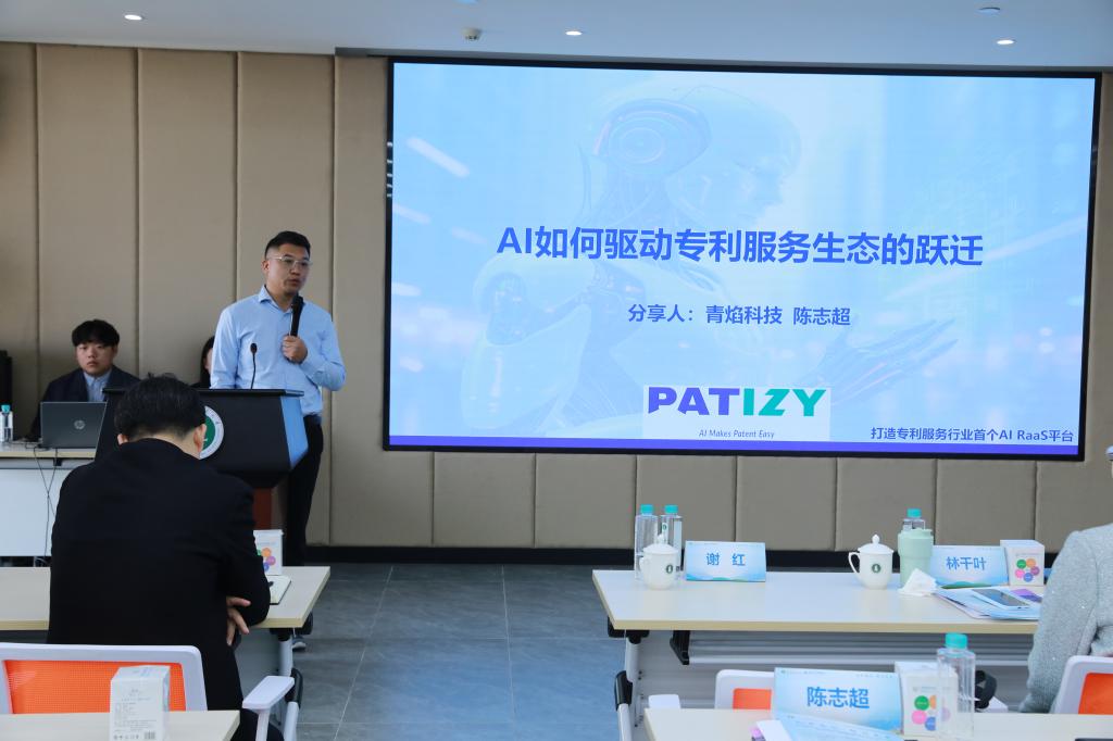 随后举办的研讨会上,业界先锋与实验室专家共话技术创新与产业应用前景。安盾网董事长艾勇、广州奥凯公司董事长王峻岭、佛山市青焰科技有限公司CEO陈志超、广东知得失数字科技有限公司副总经理叶幼玲女士分别分享了各自在知识产权人工智能领域的实践与探索。