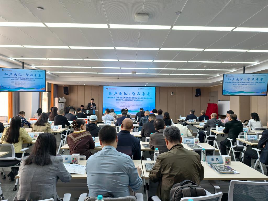 2025年12月5日,以“知产交汇·智启未来”为主题的知识产权人工智能赋能产业发展系列活动在广东技术师范大学东校区成功举办。本次活动由广东技术师范大学主办,会议邀请了国家知识产权局公共服务司林千叶调研员,广东省政协科教卫体委员会马宪民主任,广东省知识产权研究会谢红理事长,广州市知识产权局张业文副处长,广州市知识产权保护中心岳勇主任,天河区市场监管局(知识产权局)二级调研员柯杰兵,广州开发区知识产权局丁文雄调研员等专家和企业界代表共同出席。广东技术师范大学校长戴青云、副校长蔡君,科研处、交叉学科研究院、广东省知识产权大数据重点实验室、图书馆、法学与知识产权学院、电子与信息学院等部门负责人参加。广东技术师范大学科研处负责人、交叉学科研究院院长、珠江特聘教授卢旭主持本次活动。